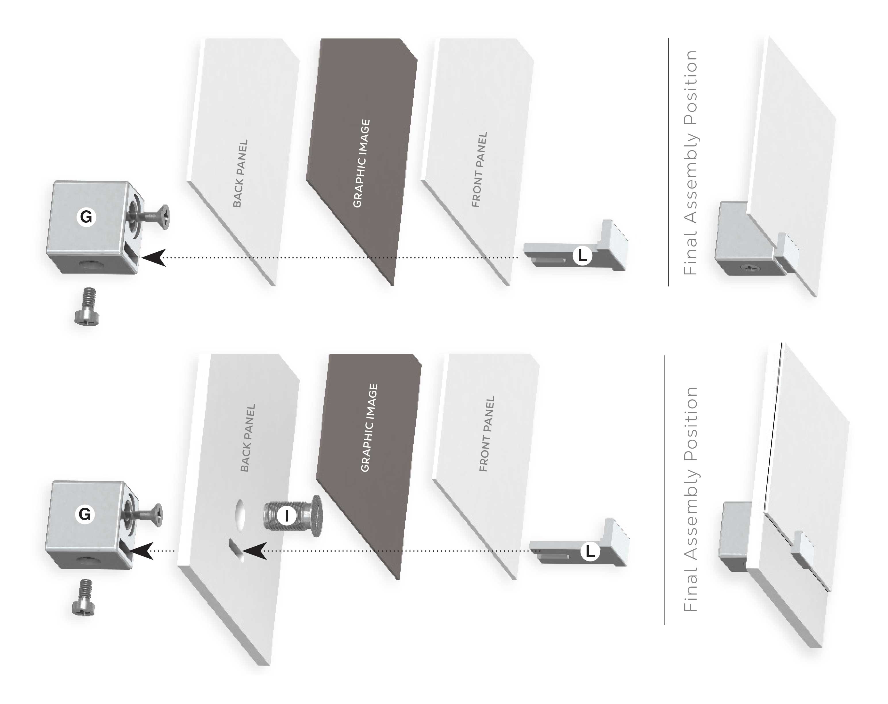 L Parts can hold multiple panels and a graphic image between the L and G Parts.