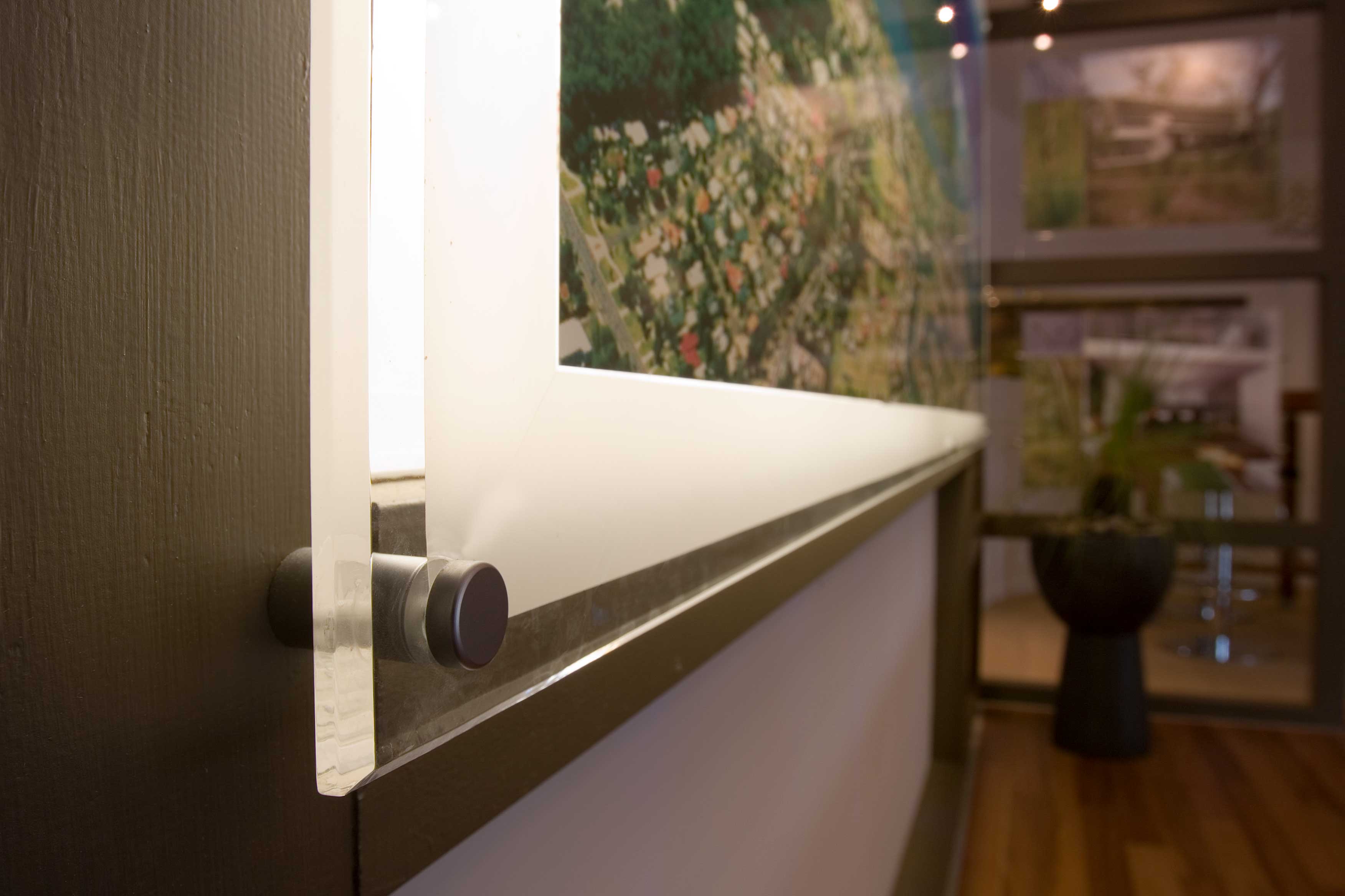 Created by Pizazz, Monomounts are an innovative standoff system, designed for installing panels on walls and other surfaces, in a wide range of graphic image and/or text displays and signage applications.