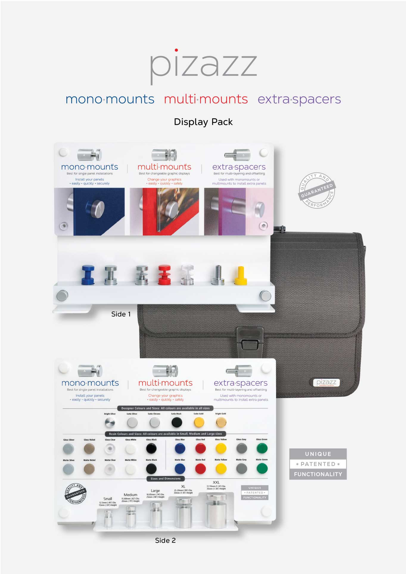 Displays are used by all sales staff to demonstrate to your customers the unique functionality of Pizazz Standoffs and the benefits they provide.